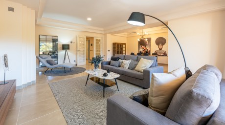This splendid apartment is rented unfurnished, offers 3 bedrooms en-suite, guest toilet, a big living-dining room open to a marvelous terrace overlooking the great view of the surrounding green area. A fully fitted kitchen, air condition and under-floor heating makes this apartment ideal as a family home. 2 garage places and storeroom completes this fantastic property